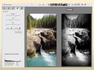 Permet la restauració de fotos antigues, rotació, zoom. Permet afegir textos a