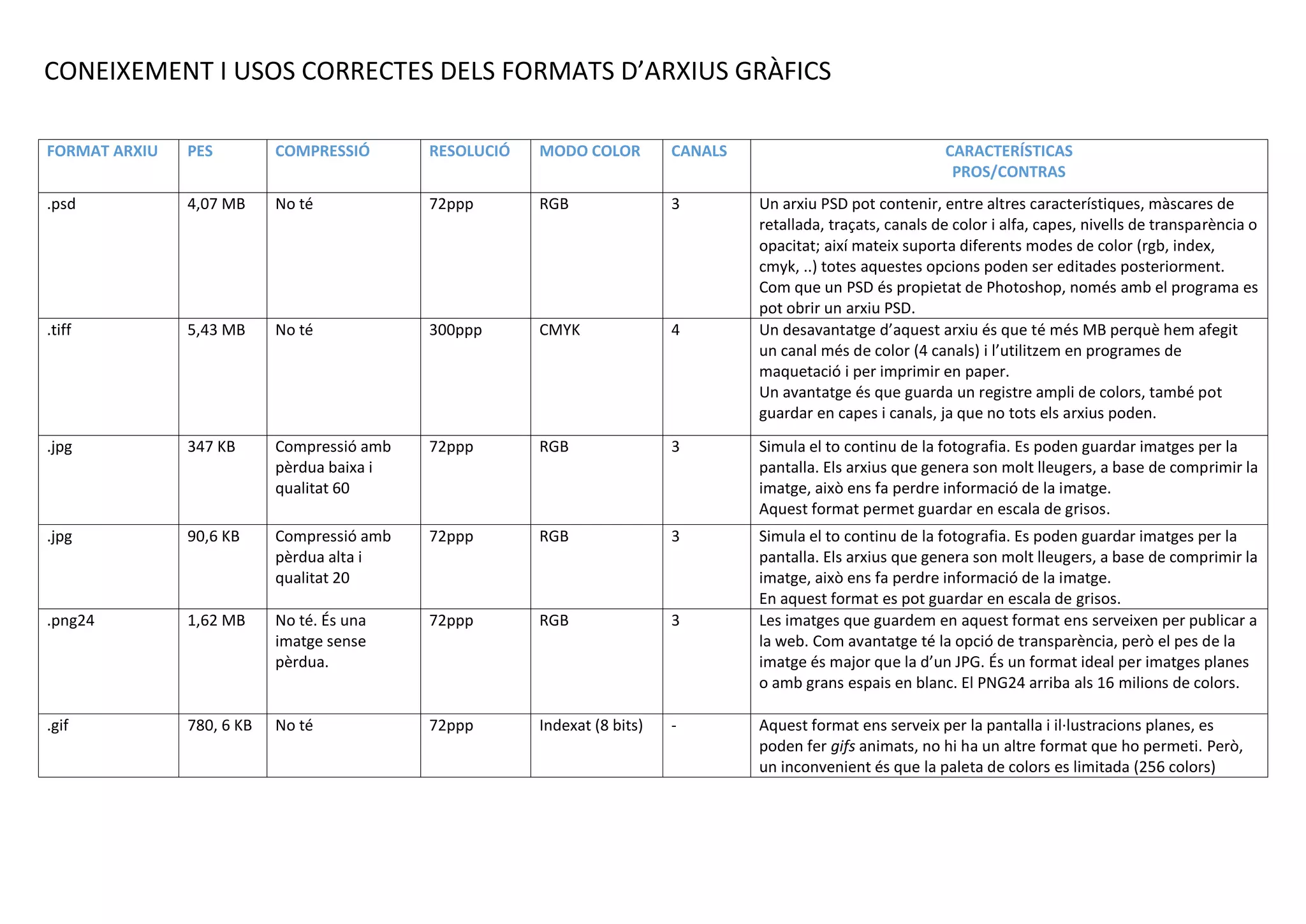 CONEIXEMENT I USOS CORRECTES DELS FORMATS D’ARXIUS GRÀFICS