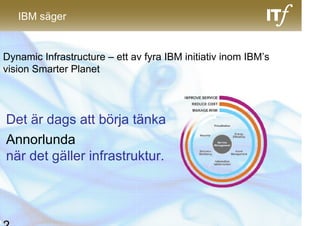 Svensk IT-funktion tillsammans med kund talar om hur man kan förbättra rapportmöjligheter och införa faktureringsinformation i existerande TSM-installationer. Det blir allt viktigare att kunna leverera backup som tjänst till både interna och externa kunder. Denna presentation hölls vid ett seminariepass för Tivoli på IBM Software Day 2010. Talare: Christopher Poulain, Svensk IT Funktion