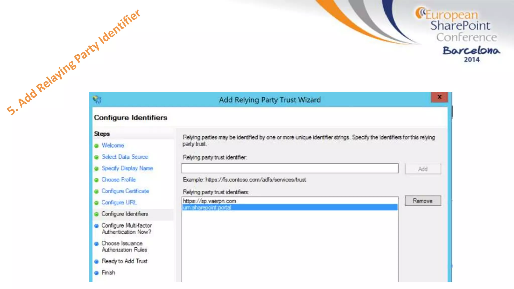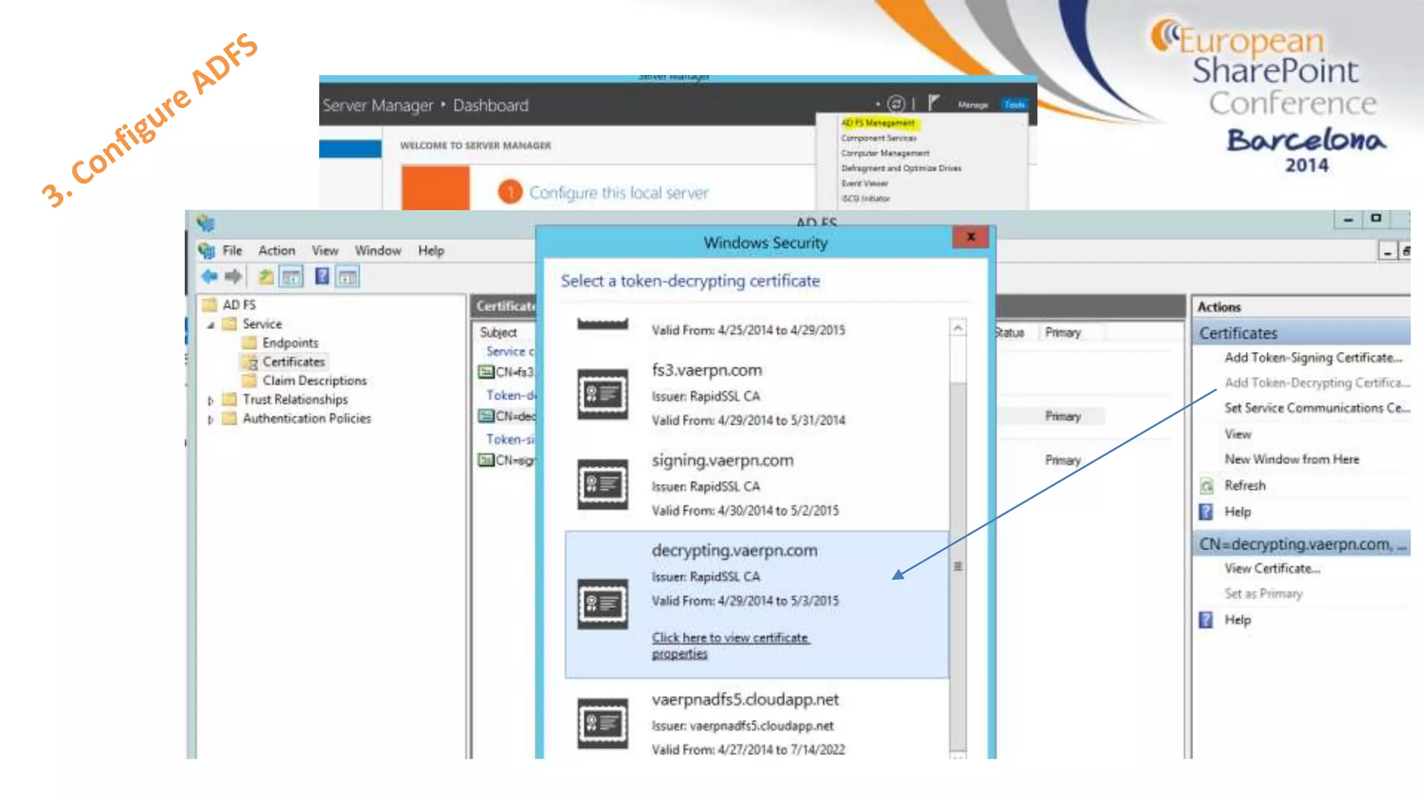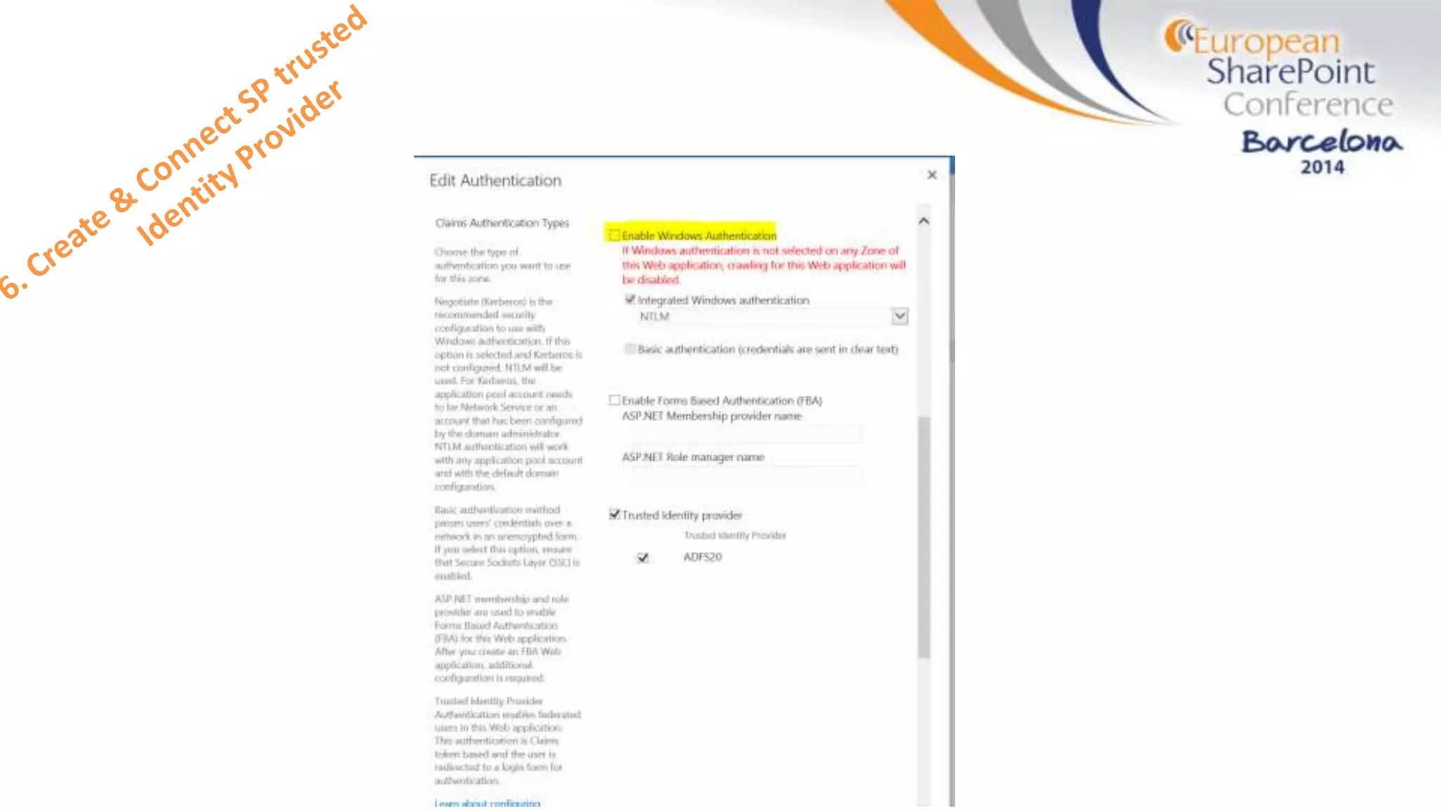 The document discusses the implementation of ADFS and claims-based authentication in SharePoint 2013, highlighting the limitations of traditional authentication mechanisms. It explains claims-based identity as an abstraction layer with claims being authoritative statements stored in security tokens, and outlines the ADFS setup process for SharePoint. The author emphasizes the need for public certificates and proper configuration to ensure a functional environment.