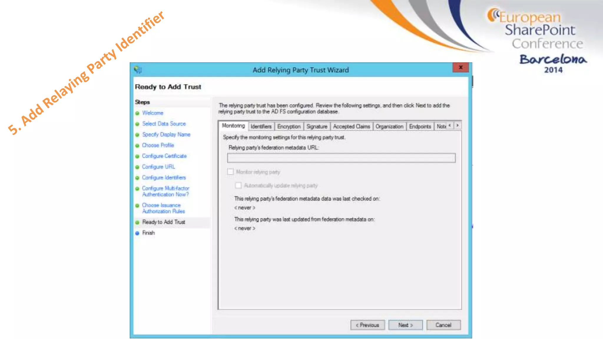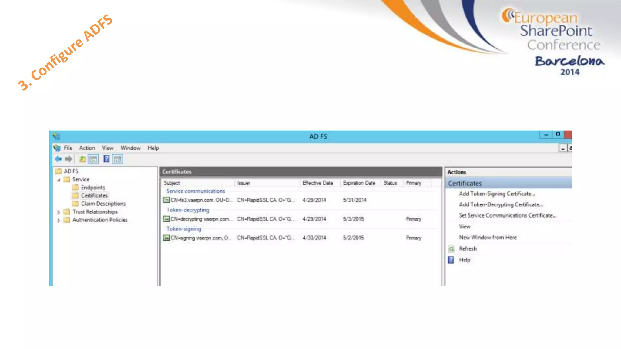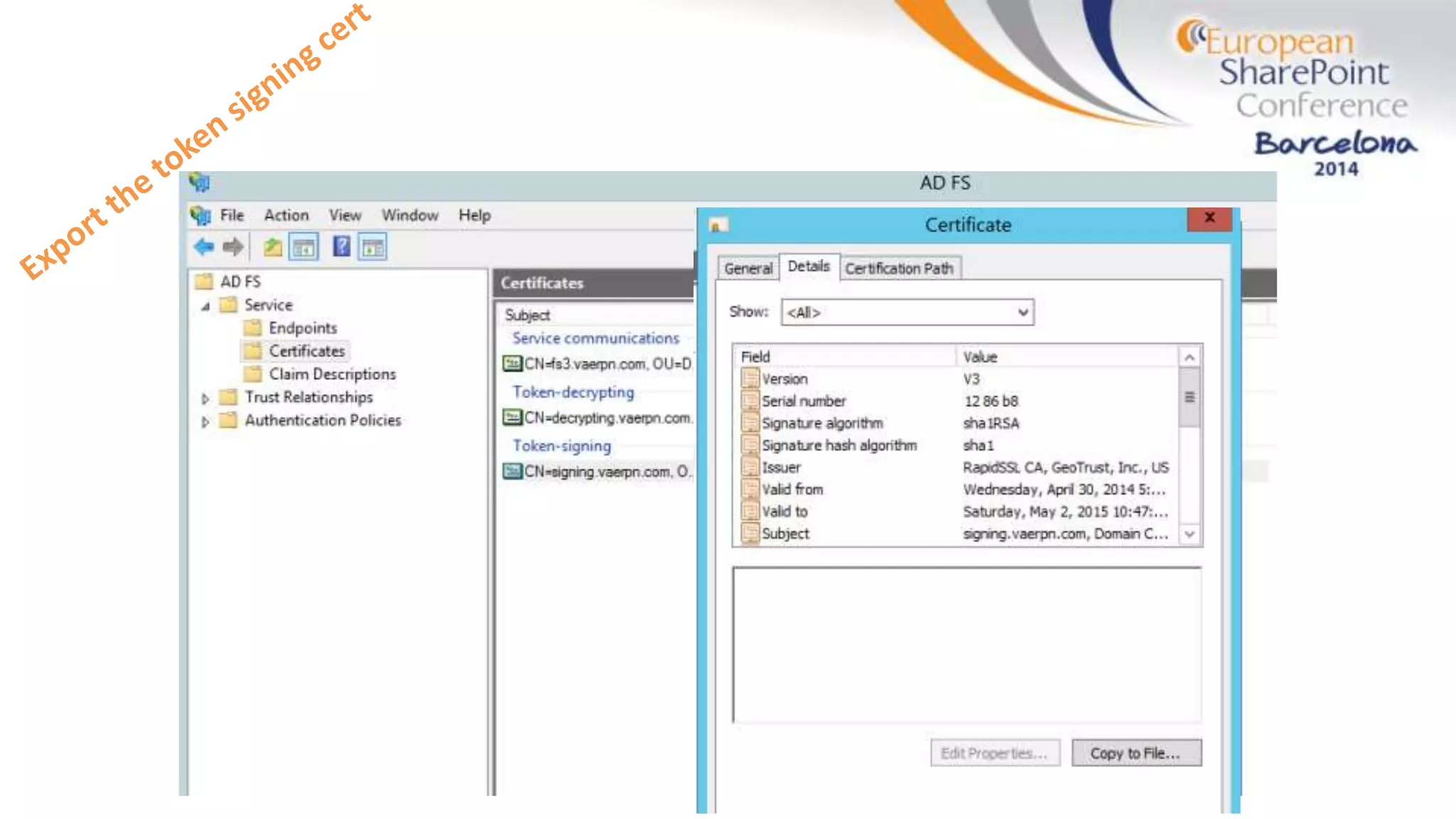 The document discusses the implementation of ADFS and claims-based authentication in SharePoint 2013, highlighting the limitations of traditional authentication mechanisms. It explains claims-based identity as an abstraction layer with claims being authoritative statements stored in security tokens, and outlines the ADFS setup process for SharePoint. The author emphasizes the need for public certificates and proper configuration to ensure a functional environment.