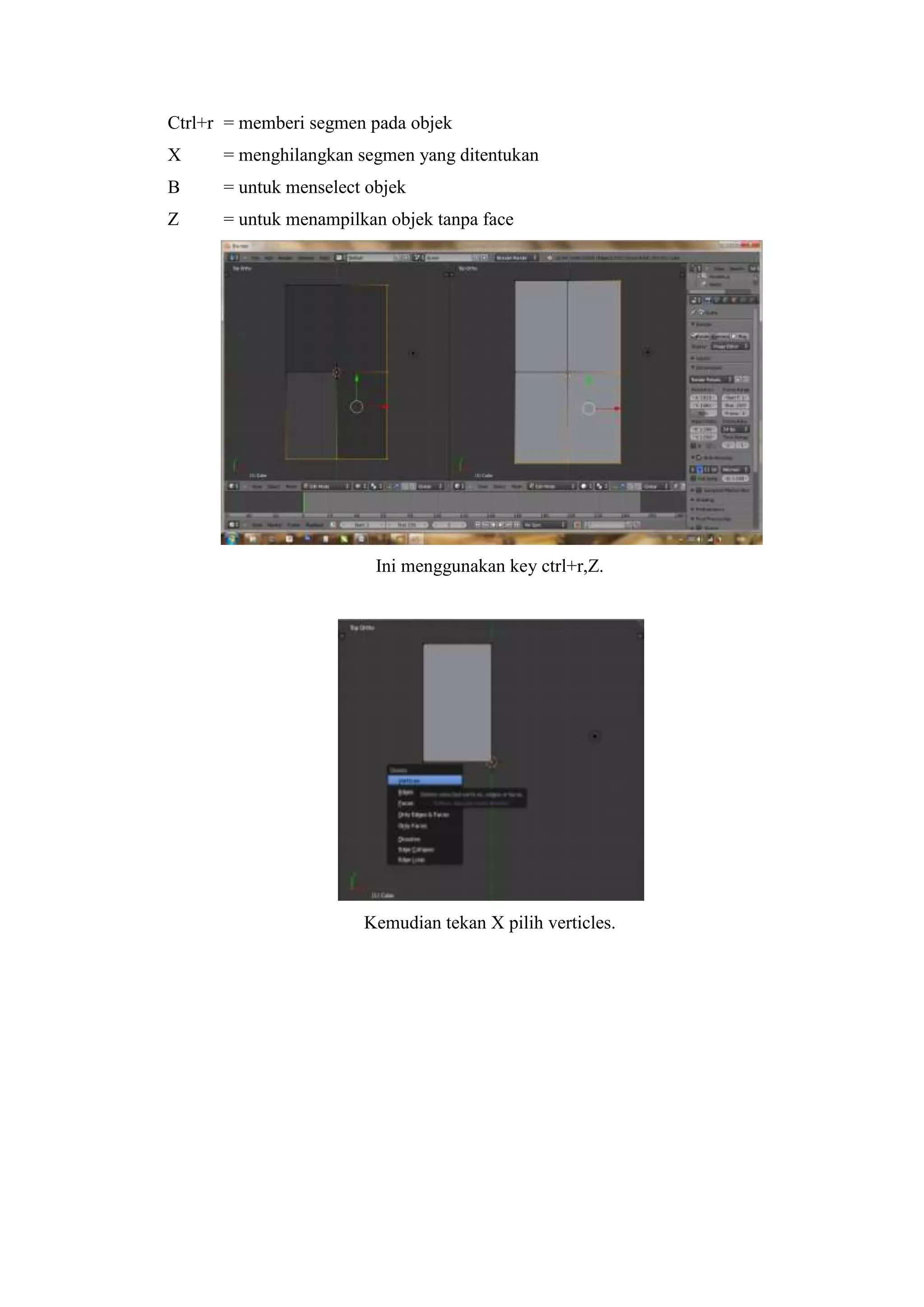 Ctrl+r = memberisegmen pada objek