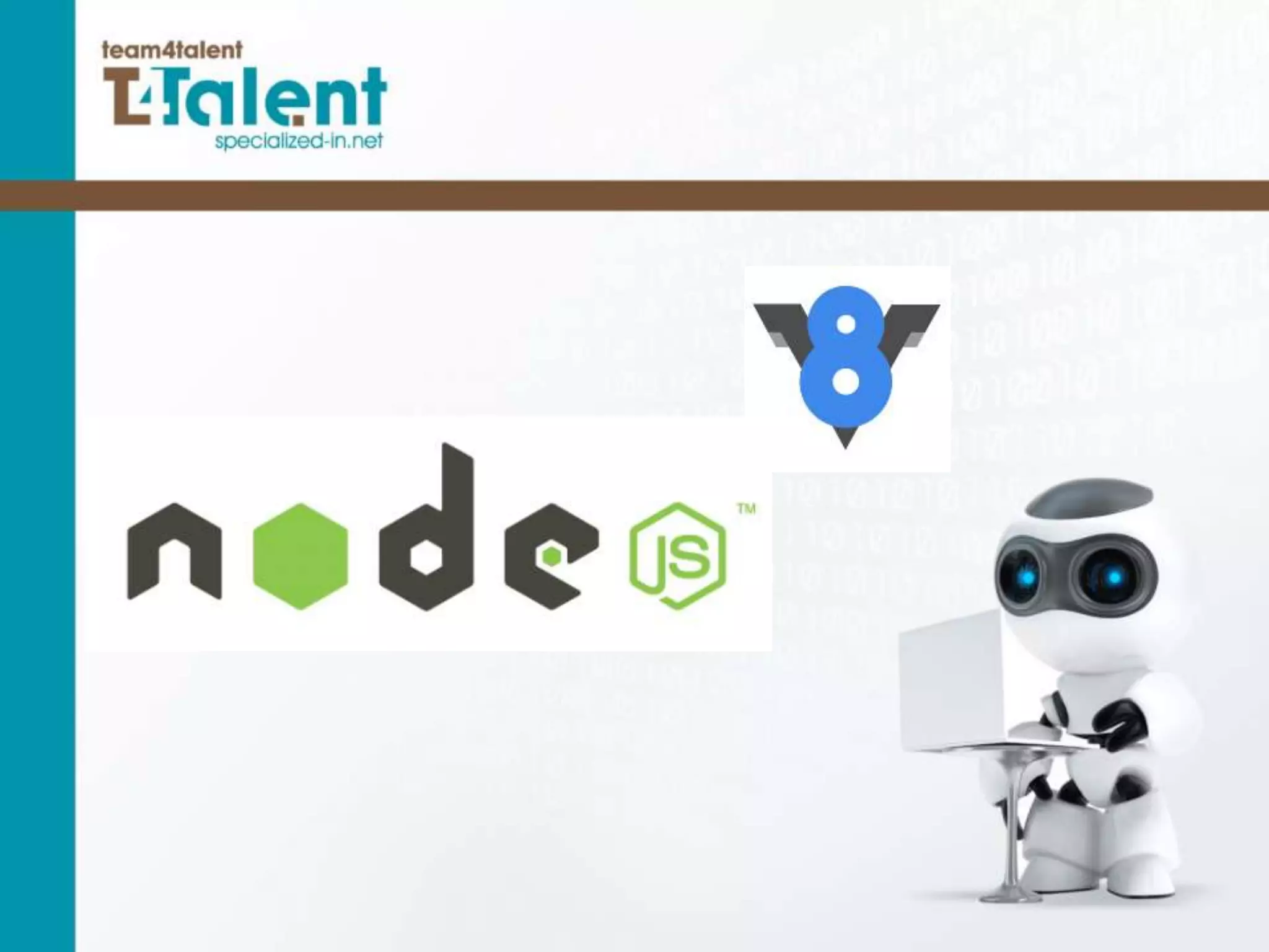2) The benefits of Node.js including its event-driven and non-blocking I/O architecture which allows for high performance and parallel processing.
