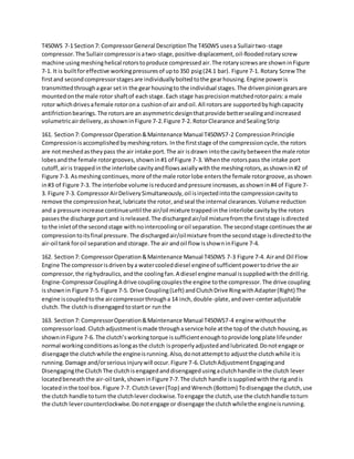 The document describes the operation of a rotary screw compressor used on a T450WS drilling rig. It contains the following key details: