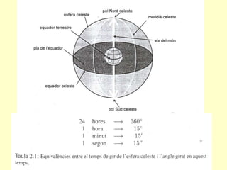 II. COORDENADES EQUATORIALSHORÀRIES AQUEST SISTEMA PREN LA REFERÈNCIA H, RELATIVA SEGONS EL MERIDIÀ DEL LLOC D’OBSERVACIÓ.