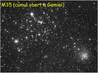 M42 (Gran Nebulosad’Orion) i M43, separades per la Cinquena Boca . Visible a simple vista, serà un dels objectes que visitarem més sovint. És un núvol gegant de gas i pols de més de 15 anys-llum de diàmetre; es troba 1.300 anys-llum.