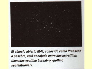 Esposa de l’egipciPtolemeu III, va prometre a Afrodita la seua cabellera si aquest tornava sa i estalvi de la batalla. COMA BERENICES Comae Berenices, Diadema , de magnitud 4’3, és un estel blanc a 59 anys llum. La constel·lació és dèbil, però conté part del Supercúmul de Galàxies de Virgo, el Cúmul de Galèxies Coma. A més, hi ha el bell cúmul d’estels Coma, a mig camí entre Cor Caroli, a CVn i Denebola, a Leo.