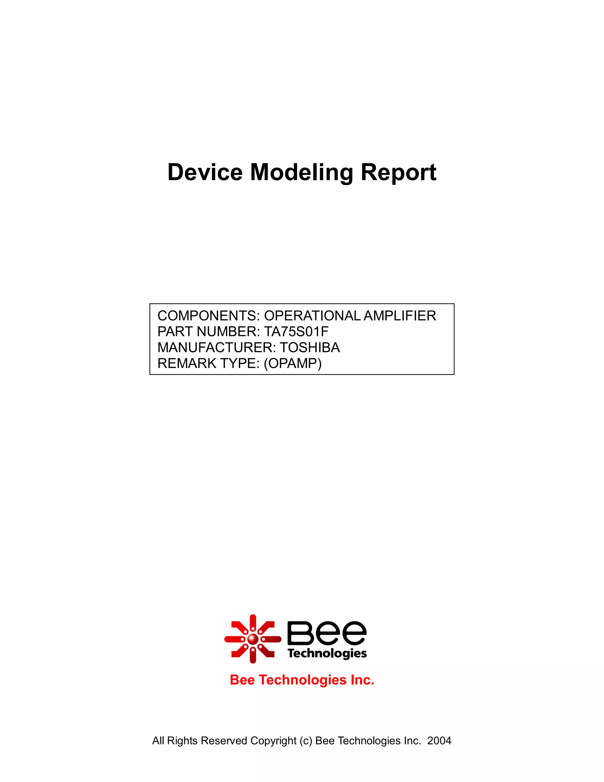 This document summarizes the specifications and simulation results of an operational amplifier component. It includes the part number, manufacturer, output voltage swing, input bias current, input offset voltage, open loop gain, unity gain frequency, common mode rejection ratio, and output short circuit current. The document compares measurement values to simulation results for each specification and shows good agreement between the two.