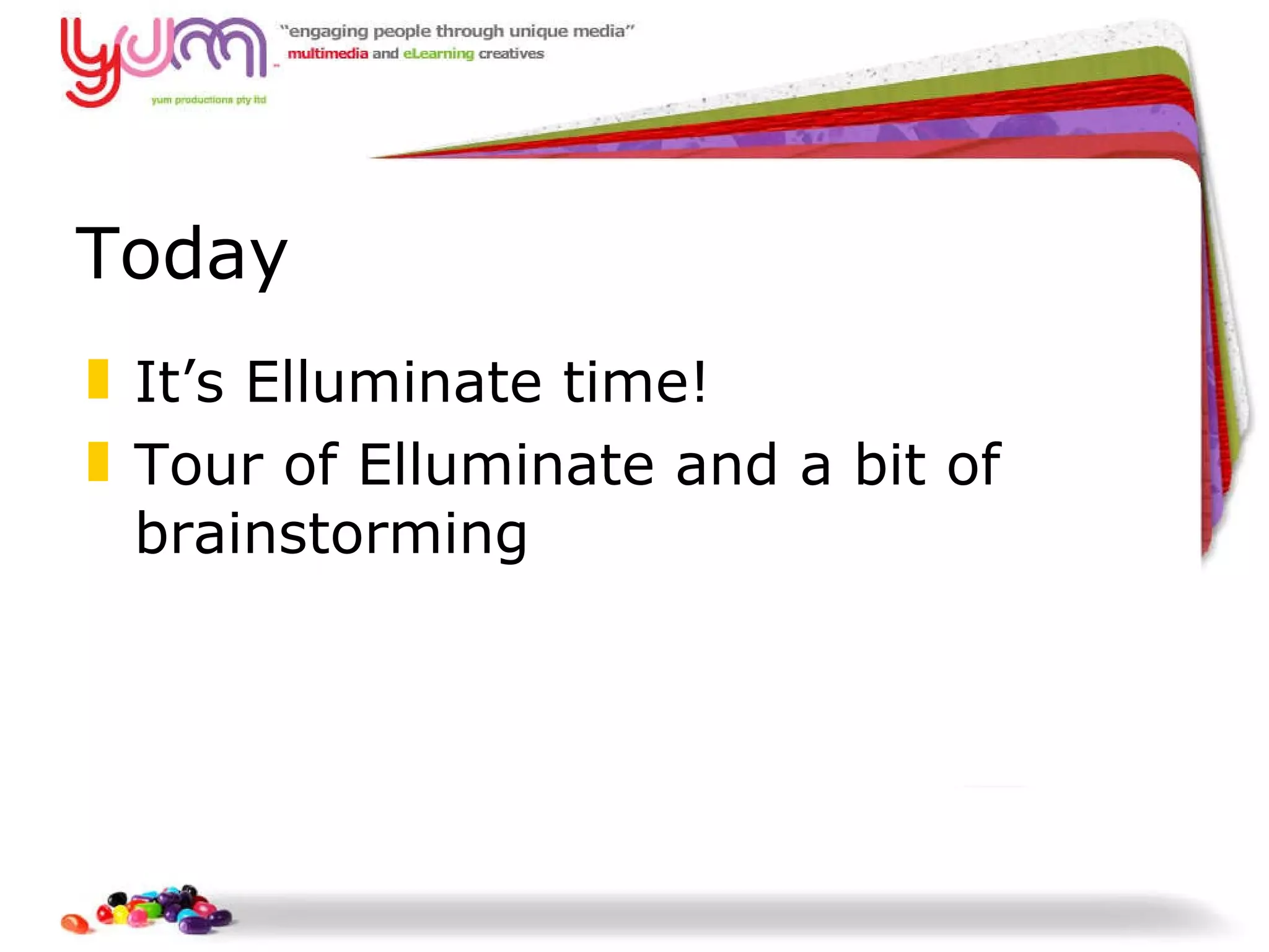 The document provides tips for creating effective presentations using Elluminate, including keeping backgrounds simple, using readable fonts, incorporating visuals, avoiding long lists of bullets, slowing down speech, practicing beforehand, optimizing internet connection speed, naming slides, using chat and polls to engage participants, and sharing applications to demonstrate websites or software. It also notes potential issues like delays when sharing applications or touring websites.