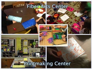The document provides an overview of Teaching for Artistic Behavior (TAB), an organization that promotes choice-based art education. TAB's mission is to support educators in providing authentic artmaking opportunities through choice-based concepts and a studio/learning centers approach. Key aspects of choice-based art education discussed include regarding students as artists with real choices, supporting multiple modes of learning, and utilizing various forms of assessment. The document also provides guidance on setting up a TAB choice-based art studio, including considerations for space, supplies, centers, classroom structure, instructional approaches, and assessing student growth. A variety of additional resources are recommended to support the implementation of choice-based art education.