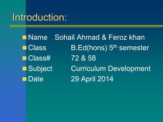 This document provides an overview of curriculum models proposed by Hilda Taba, including a description of Taba's background and philosophical ideas. It outlines Taba's inductive model of curriculum development, which begins with diagnosing learner needs and involves teachers. The key steps in Taba's model are identifying student needs, formulating objectives, selecting and organizing content, choosing learning experiences, and determining evaluation. Taba's grassroots approach emphasizes addressing student needs and giving teachers a role in curriculum development.