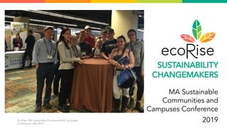 The document outlines the Ecorise conference in Massachusetts, focused on fostering sustainable communities and campuses. It highlights educational initiatives, including eco-audit grants and green building lessons for K-12 students, which aim to engage youth in sustainability and social entrepreneurship. The conference showcases successful programs and encourages collaboration among educators to promote environmental responsibility.