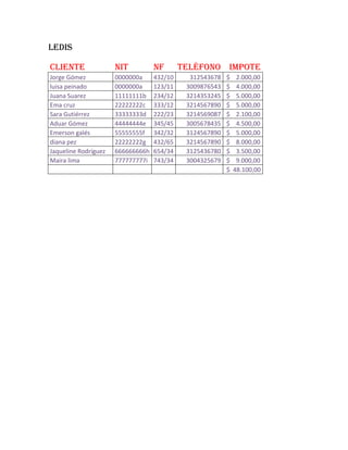 ledis Hernández 2222222C 432/12 3157654323 $ 2.000,00