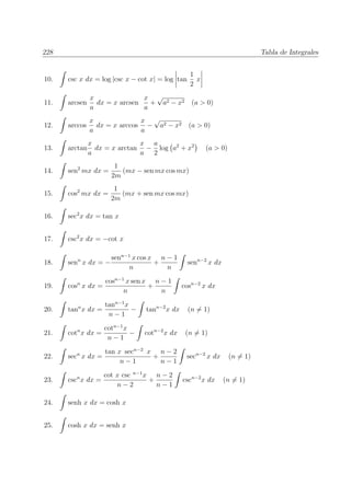 This document contains a table of integrals with 84 entries listing common integral formulas. Each entry provides the integral of a function and its solution. The integrals cover functions including polynomials, trigonometric, inverse trigonometric, exponential, hyperbolic, and combined functions.