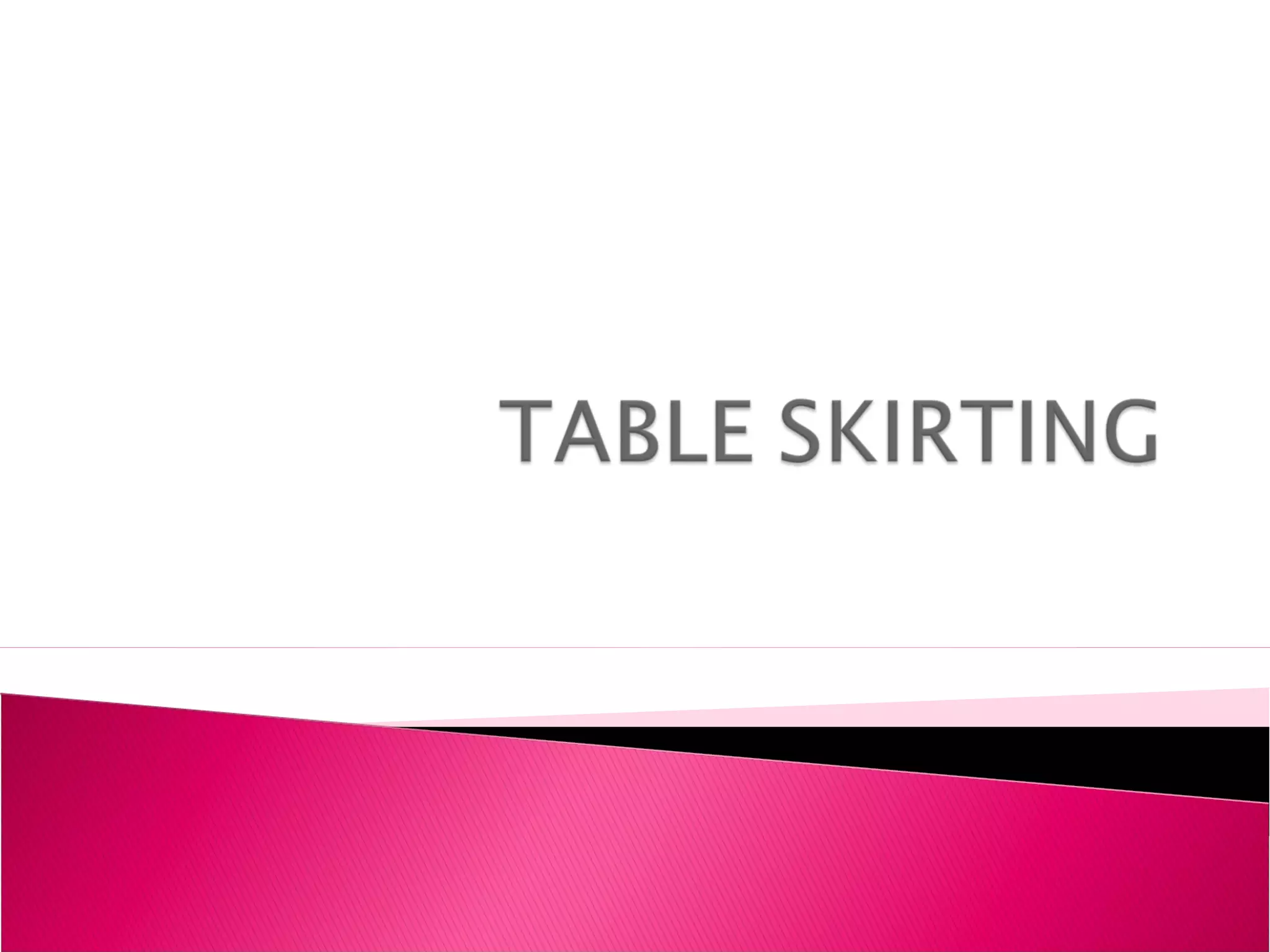 The document discusses different types of table skirts used to decorate tables for various occasions. It describes several options for table skirts including gathered, knife pleated, box pleated, French box pleated, plastic, fringe, and swag styles. Each type is suited to different settings, from casual to formal events, and they vary in complexity, appearance and cost. Table skirts are used to cover tables and add elegance or a decorative element for celebrations and gatherings.