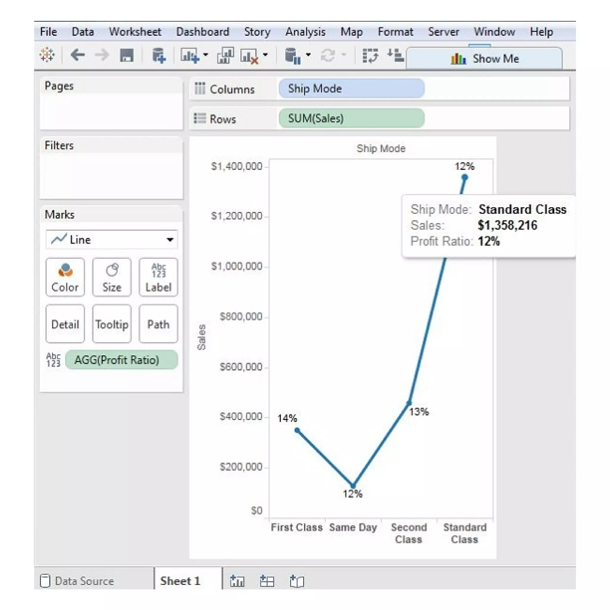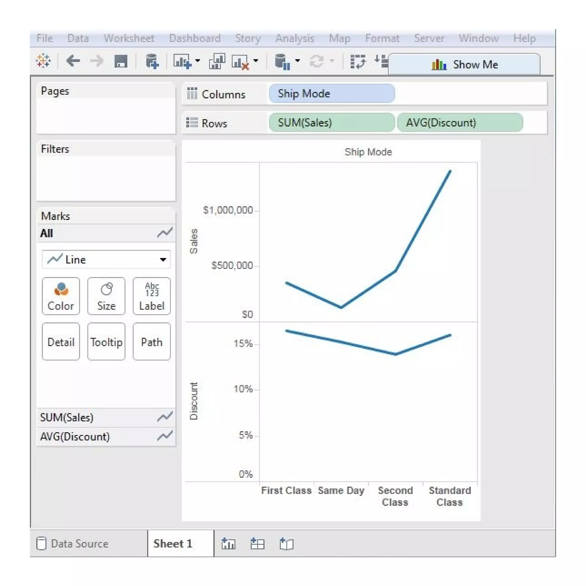 The document provides instructions on creating different types of line charts in Tableau, including simple line charts, multiple measure line charts, and charts with labeled measures. It explains how to select dimensions and measures, utilize the marks card, and visualize variations in data. The document also hints at upcoming topics related to other chart types such as pie charts and scatter plots.