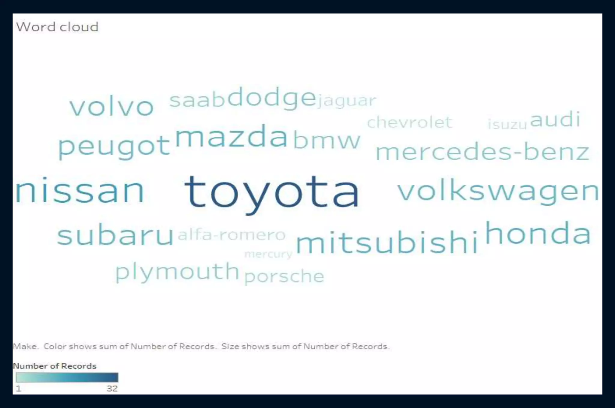 The document is a tutorial on using Tableau data visualization software (version 2019.3.0) to create various types of interactive visuals, including scatter plots, histograms, bar graphs, side-by-side charts, stacked bar charts, pie charts, doughnut charts, and word clouds using an automobile dataset. It provides step-by-step instructions for creating each visual along with analyses of the resulting graphs. The goal is to demonstrate how to analyze trends and relationships within data visually.