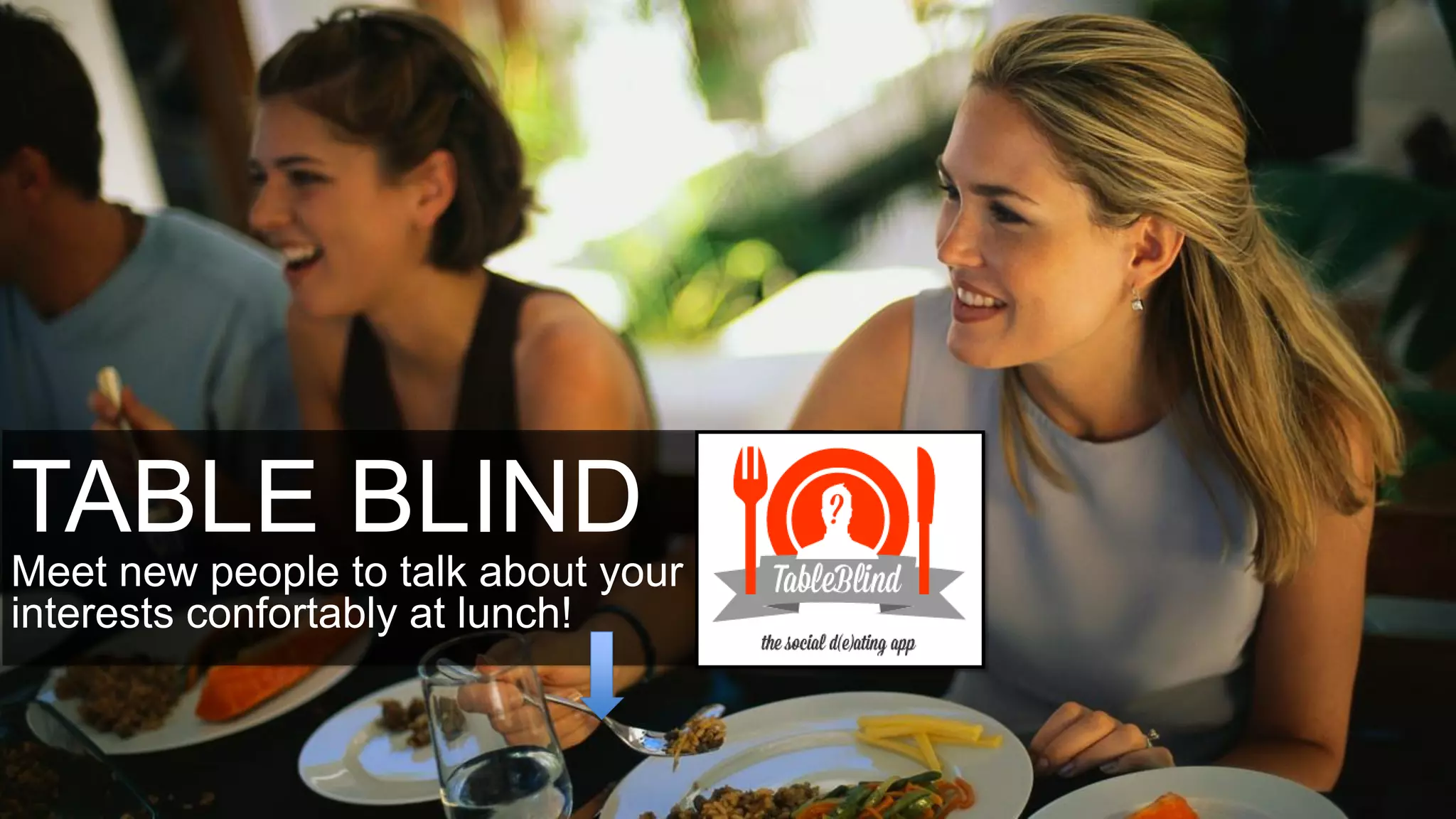 The document discusses a mobile app called Blind Table that connects individuals who want to socialize during lunch by enabling them to discover and meet people with shared interests in a blind setting. A survey indicated substantial interest in socializing and potential willingness to pay for enhanced experiences. The business model combines user and venue subscriptions, offering discounts and promotional opportunities to facilitate discussion gatherings at restaurants and bars.