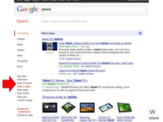 The document discusses different tablet options for different operating systems. It provides a table comparing features of tablets running iOS, Android, Blackberry and Windows operating systems, such as available storage options, wireless capabilities, battery life and camera specs. It then discusses how tablets can help users run their business and deliver information to clients, including examples of cloud computing and apps that can facilitate tasks like online meetings, sharing files and getting electronic signatures.