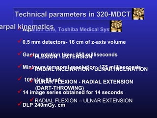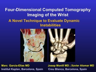 Four-dimensional CT can be used to evaluate dynamic wrist instabilities. It allows visualization of carpal kinematics during various wrist motions like flexion-extension and dart throwing. This helps characterize patterns of non-dissociative carpal clunking and differentiate partial from complete tears of the scapholunate ligament, improving diagnosis of wrist instability types.
