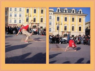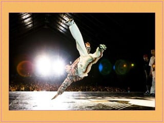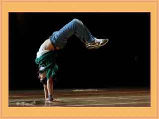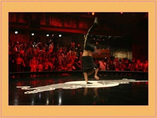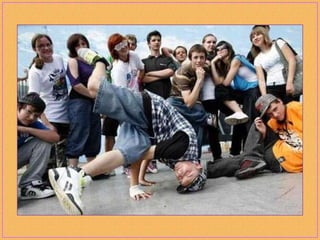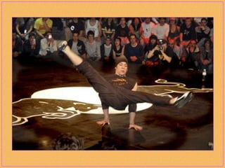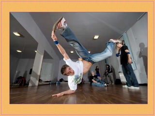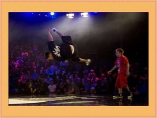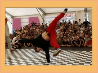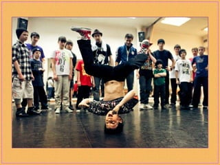 Breakdancing, also called b-boying or breaking, is a street dance developed by African American and Latino youth in New York City that consists of four elements: toprock, downrock, power moves, and freezes. Practitioners of this style, called b-boys, b-girls, or breakers, often compete against each other or in crews in breakdancing battles and use hip-hop music remixed to extend the musical breaks for their dances. While sometimes called "breakdance," the original terms preferred by pioneers of the dance form are "b-boying" and "breaking."