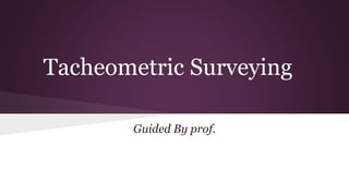 This document discusses tacheometric surveying, a rapid method used to determine horizontal distances and elevations without chaining, ideal for rough terrain and large areas where less accuracy is acceptable. It outlines the characteristics, applications, and methods involving the tacheometer, including the stadia method, movable, and fixed hair methods. Additionally, it addresses common errors and standards of precision to enhance accuracy in tacheometric observations.
