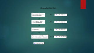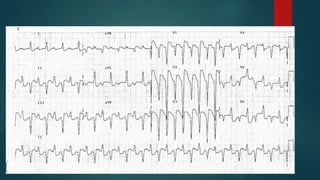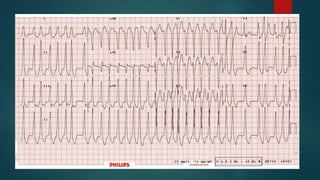 This document discusses various types of tachyarrhythmias categorized by their anatomical location and electrophysiological mechanisms. It describes atrial arrhythmias including sinus tachycardia, atrial fibrillation, atrial flutter, and atrial tachycardia. It also discusses atrioventricular node reentrant tachycardia, atrioventricular reentrant tachycardia, junctional tachycardia, and ventricular arrhythmias including monomorphic ventricular tachycardia, polymorphic ventricular tachycardia, and ventricular fibrillation. Key features and mechanisms of each type are outlined to aid in diagnosis and classification.