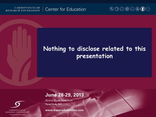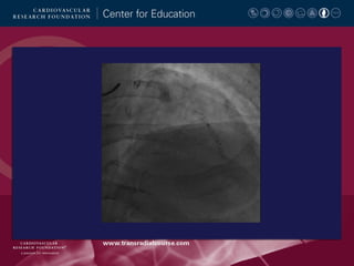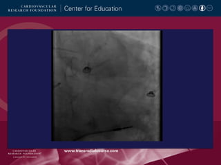 This document summarizes the techniques used at the presenter's center for treating bifurcation lesions through radial versus femoral access. It provides examples of bifurcation cases treated through radial access using provisional stenting or two-stent techniques. The conclusions state that most bifurcations can be treated through radial access but femoral access may be considered if backup support is suboptimal or simultaneous implantation of two stents is needed, such as for conventional mini-crush or V stenting.