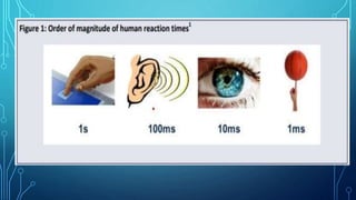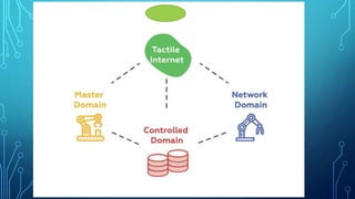 The document discusses the Tactile Internet, which will enable ultra-low latency interactions between humans and machines. It defines the Tactile Internet and its vision of enabling human reaction times for remote interactions. It outlines the architecture of the Tactile Internet, including the master, network and controlled domains. Finally, it discusses some applications like healthcare, gaming and infrastructure requirements like latency, reliability and edge computing to support the Tactile Internet.