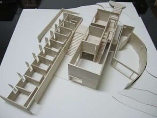 Tadao Ando is a renowned Japanese architect known for his minimalist concrete designs. He was self-taught and studied both traditional Japanese architecture and modern Western styles. A key work is the Church of Light (1995), built using concrete and defined by interplays of light and darkness. It won Ando the prestigious Pritzker Architecture Prize. Other works highlighted include the Naoshima Contemporary Art Museum, built into a seaside landscape using concrete and stone, and the Koshino House, featuring parallel concrete volumes connected underground.