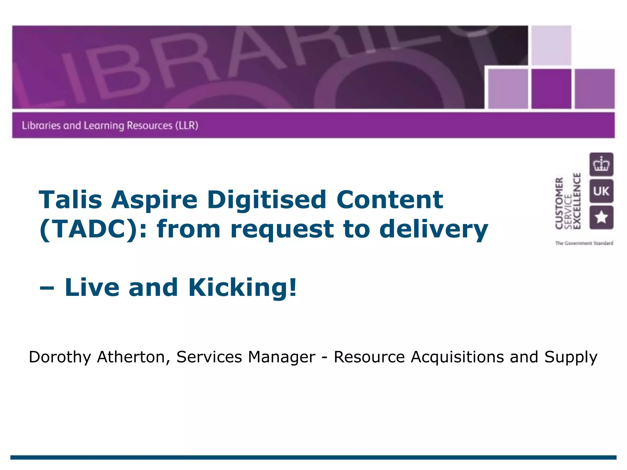 The Talis Aspire Digitised Content (TADC) has transitioned from pilot to a fully live system, facilitating digitisation requests from academics across nine schools with significant usage statistics recorded. Future improvements are focused on enhancing product functionality and measuring the value and impact of TADC, emphasizing compliance, user experience, and operational efficiency. Overall, the initiative aims to streamline digital content access for academics and students while promoting copyright awareness and satisfaction with library services.