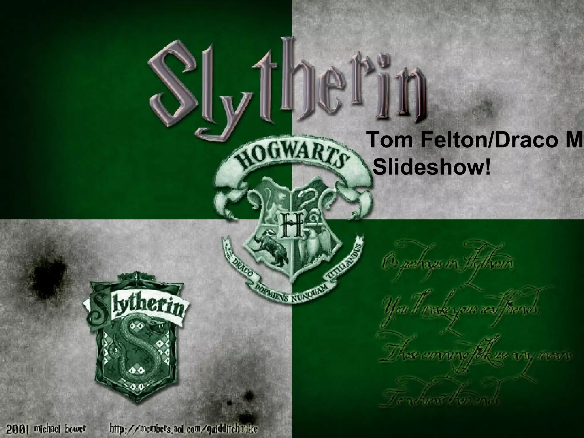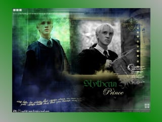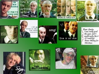 The document appears to be a slideshow about the Harry Potter character Draco Malfoy, as it references him directly and includes lines he would say. It moves through various scenes and emotions involving fear, disrespect and a dramatic ending where it seems Malfoy is killed. The slideshow concludes with a picture of Malfoy.