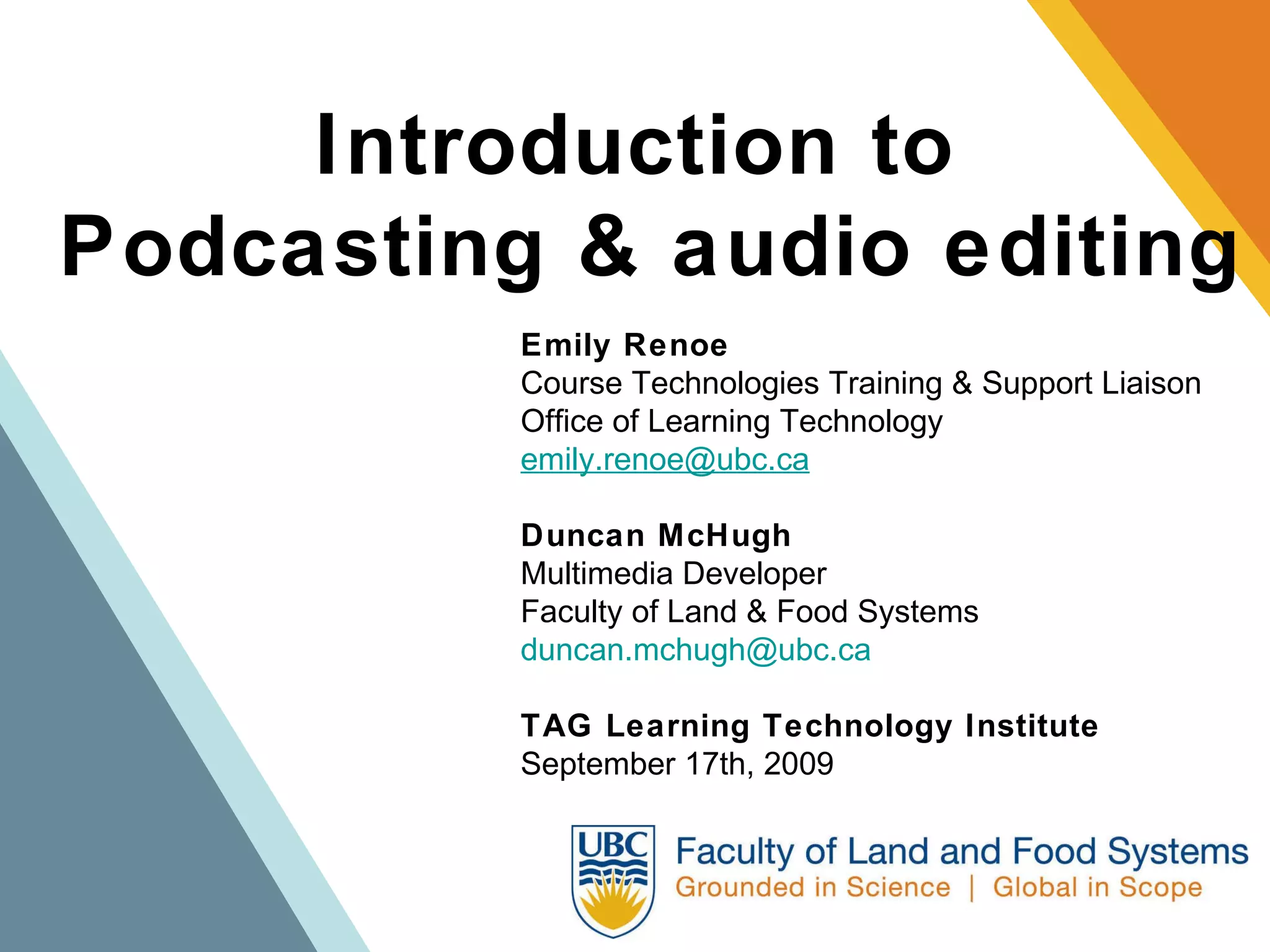 This document outlines a training session on podcasting and audio editing, focusing on educational podcasting and the use of Audacity software. It includes basic techniques for recording, editing, and exporting audio, along with resources for further learning. The agenda also highlights the importance of choosing the right equipment and understanding the podcasting tools available on campus.