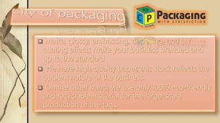 City of Packaging is a website dedicated to providing packaging solutions and services to businesses. It offers a wide range of packaging products from different materials along with packaging design, printing, and fulfillment services. Visitors to the site can learn about its packaging offerings, get quotes, and place orders for their packaging needs.