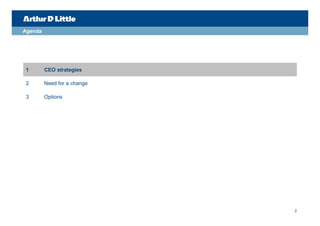 The telecom industry faces significant challenges including decreasing revenues and EBITDA. CEO strategies show similarities around data monetization, partnerships, and vertical expansion. However, operators are constrained by their ability to invest and monetize networks. This has led to a fragmented value chain and the need to rethink business models through options like diversification, changing business models, cost cutting, consolidation, or shareholders stepping down. The online media industry winners have leveraged search, social networks, hardware/software integration, while losers faced challenges in business models and product dependence.