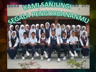 Dokumen ini menggambarkan suasana ceria pelajar-pelajar semasa acara persembahan, mengekspresikan rasa cinta dan penghargaan mereka kepada guru-guru yang mendidik. Mereka berkongsi gelagat dan keunikan setiap guru, serta menunjukkan kebersamaan dan kegembiraan di kalangan rakan-rakan. Terdapat juga elemen humor dan penghormatan kepada usaha guru dalam membimbing mereka.