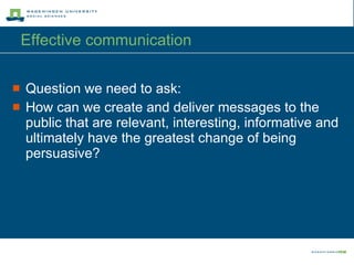 Tailored communication aims to create targeted health messages for individuals based on their unique characteristics. It seeks to increase personal relevance and involvement to better influence behavior change. Research shows tailored interventions can be effective by providing customized messaging that increases relevance, though the impact of message framing on behavior is complex. While gains frames may work better for preventive behaviors like dental hygiene, the effect of framing depends on the behavior and individual motivations being addressed. Ongoing research is needed to refine practical guidelines for developing optimally persuasive health messages.