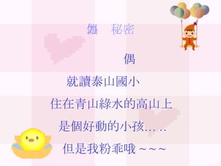 住在青山綠水的高山上 是個好動的小孩… .. 但是我粉乖哦 ~~~