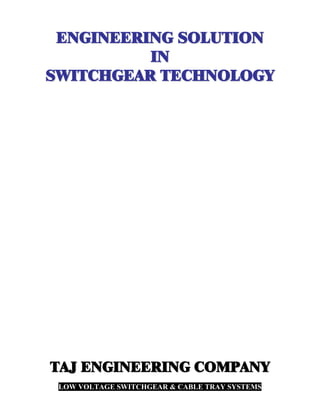 The document discusses Taj Engineering Company and the engineering solutions it provides in switchgear technology. It lists Taj Engineering's product range which includes low tension panels, power factor improvement plants, motor control centers, power distribution boards, lighting distribution boards, and cable tray systems. It also provides details on communication methods, job references, and technical specifications for its products.