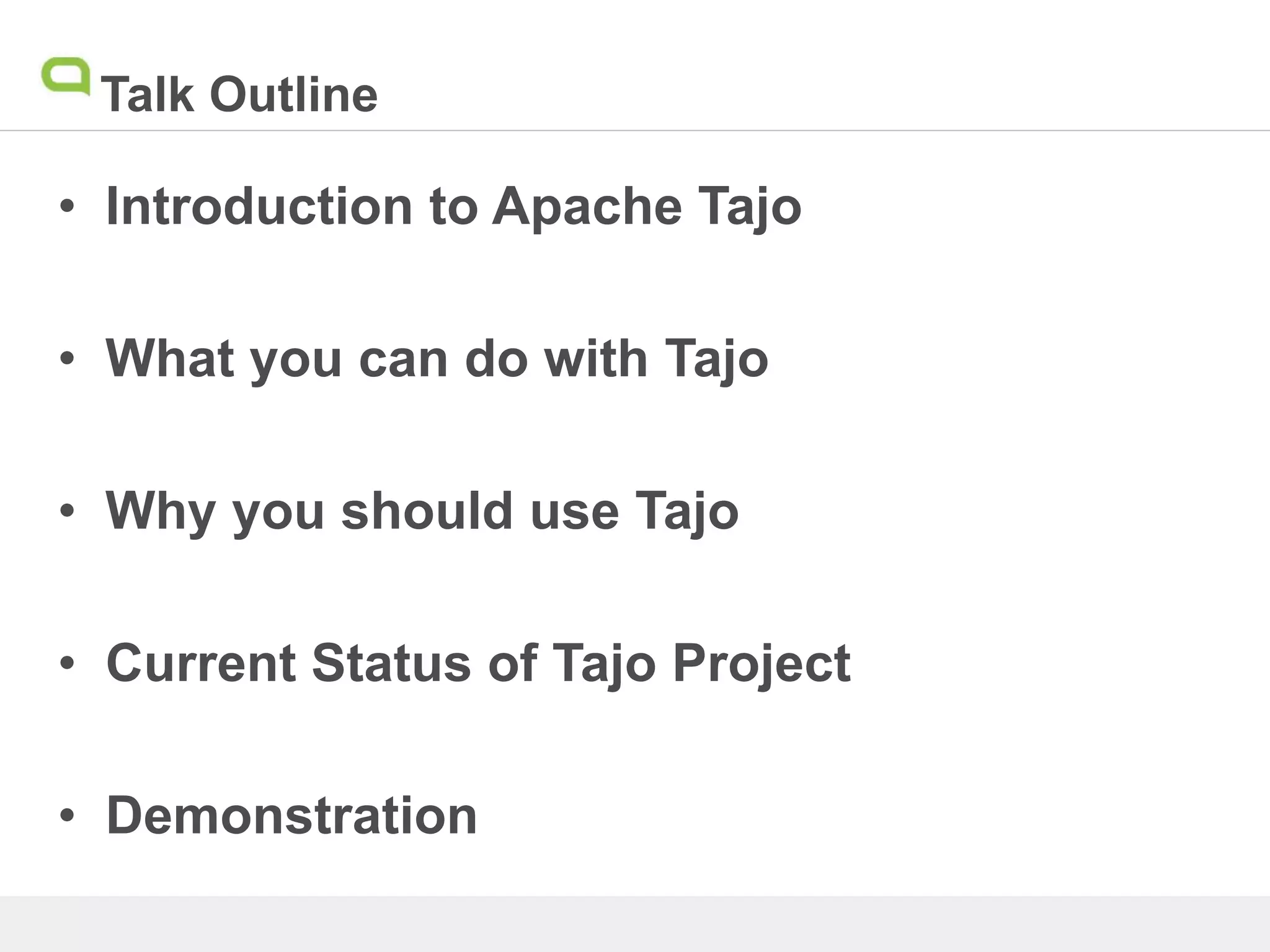 Apache Tajo is a big data warehouse system built on Hadoop, supporting SQL standards and providing low-latency queries. The project is currently in beta, with key features developed and is fully community-driven. Future developments include improvements in scheduling and execution speed, among other optimizations.