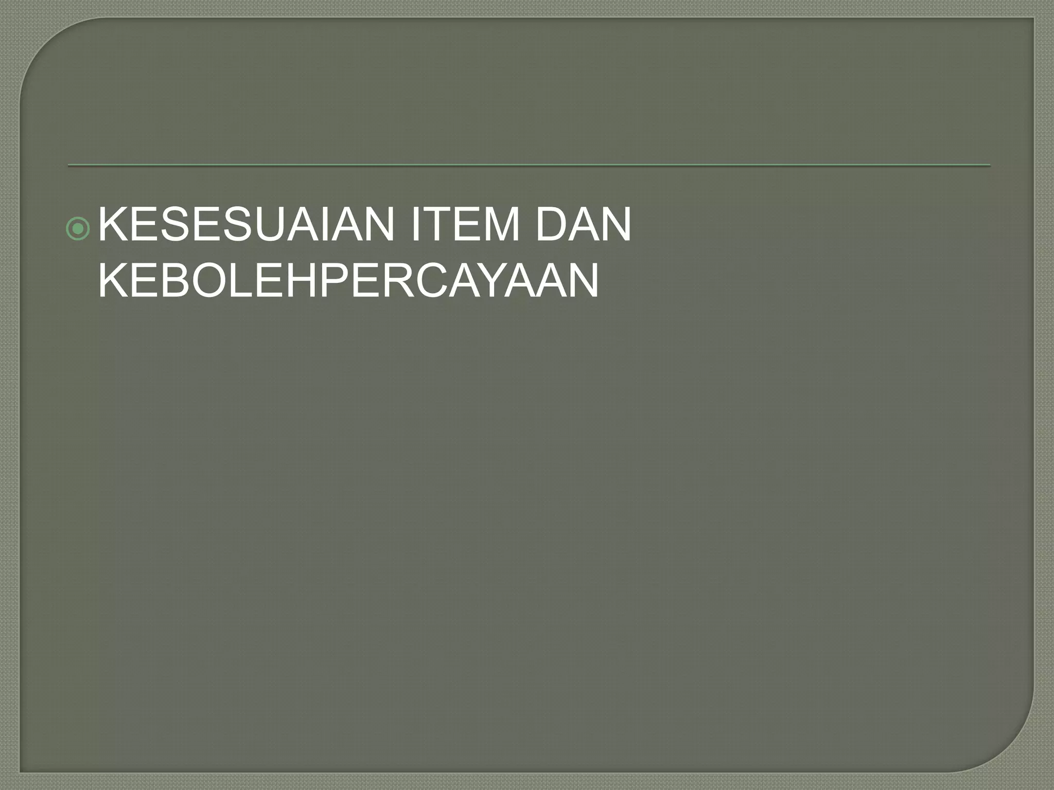 Dokumen ini menerangkan tentang kesahan dan kebolehpercayaan dalam alat ukur, termasuk jenis-jenis kesahan seperti kesahan kandungan, konstruk, muka dan hubungan kriteria. Ia juga membincangkan kepentingan konsistensi dalam pengukuran dan metode untuk menilai kebolehpercayaan, termasuk ukuran kestabilan, kesetaraan dan ketekalan dalaman. Akhirnya, dokumen ini menjelaskan bagaimana faktor-faktor seperti panjang ujian dan kesukaran item boleh mempengaruhi kebolehpercayaan ujian.