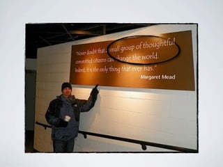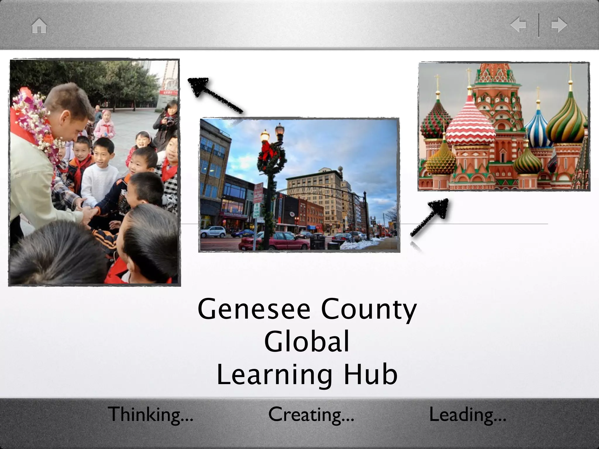 The document describes a vision for the Genesee County Global Learning Hub (GCGLH). It advocates shifting from a "fixed mindset" model of education to a "growth mindset" that is learner-centered, interdisciplinary, and focused on real-world problem solving through action research. The GCGLH aims to cultivate skills like creativity, global competency, technology fluency, and service learning by removing barriers between subjects and connecting learning directly to the local community. It calls for building a culture of "action researchers" where all members of the learning community contribute and reflect on their work to make a difference in the world.