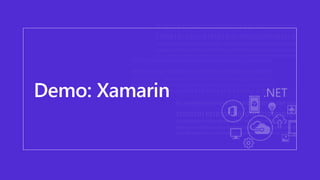 The document discusses mobile development using Xamarin and Azure Functions, presented by James Montemagno, a lead program manager at Microsoft. It highlights the essentials for building beautiful native apps with shared C# code, native API access, and high performance. Additionally, it mentions various capabilities of Xamarin.Essentials and provides insights on serverless functions scenarios.