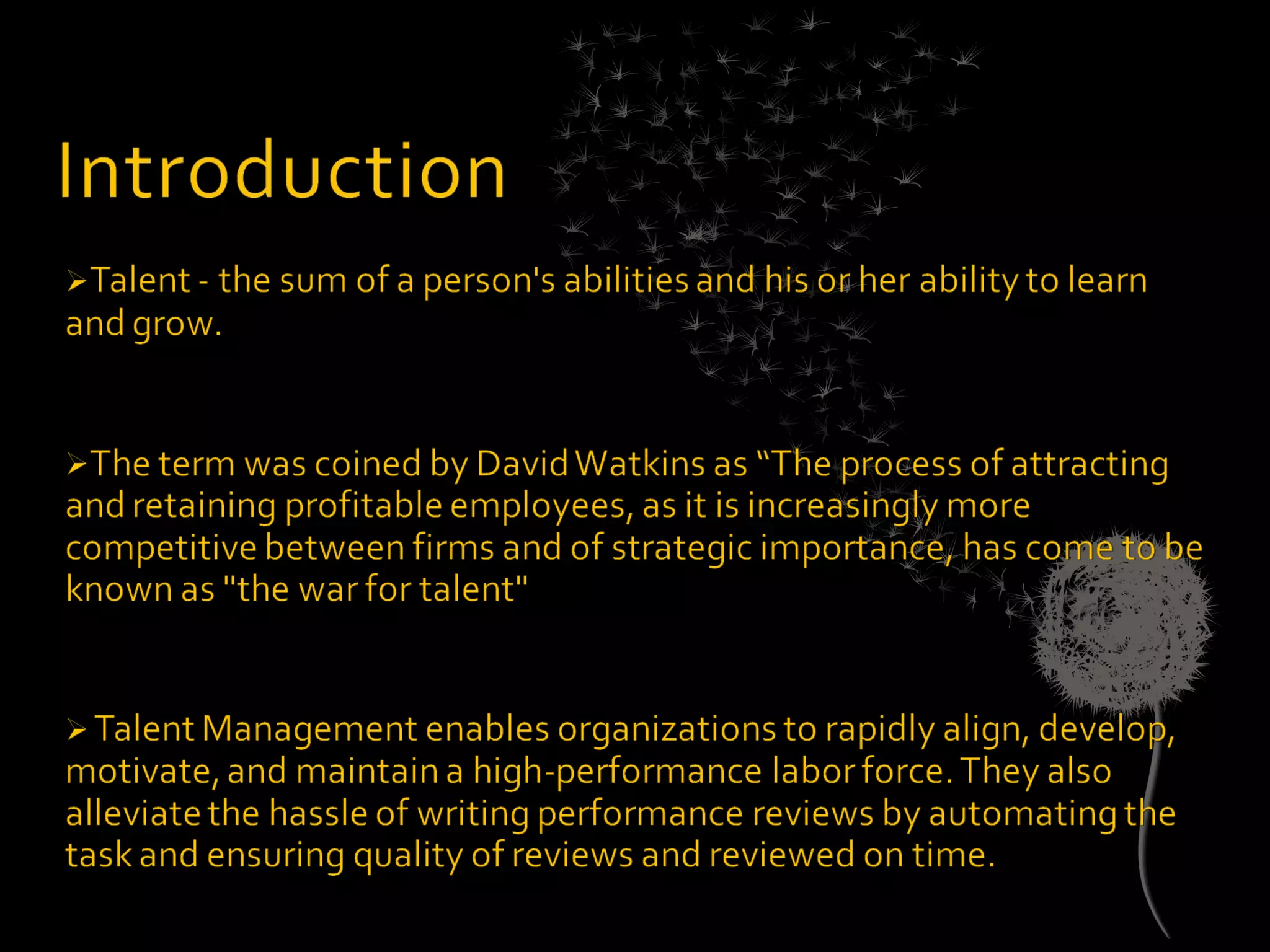 The document discusses objectives, essentials, elements and strategies of talent management. It aims to capture and retain talent, identify challenges, and establish trends. Talent management involves identifying and developing potential in people through a supportive culture. Key elements include resourcing, attraction, retention, performance management and learning. Strategies center around acquiring, developing and retaining top talent through internal and external approaches.