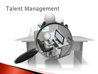 This document provides an overview of talent management strategies for small businesses. It discusses the benefits of talent management, which include aligning employees with goals, improving communication, recognizing performance, and providing development opportunities. It then offers specific strategies for small businesses to attract, engage, and retain top talent, including building an internal and external brand, effective recruiting, performance management, learning and development, and succession planning. The presentation emphasizes that talent management is just as important for small businesses as it is for large companies.