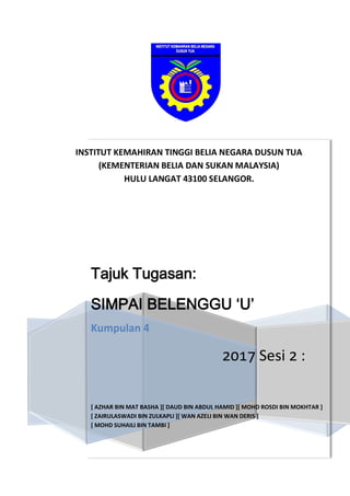 Dokumen ini menerangkan tentang kaedah dan langkah-langkah membuat simpai belenggu 'u' yang digunakan pada kabel pengalir neutral di talian atas voltan rendah. Ia merangkumi alat yang diperlukan, langkah kerja, dan peralatan keselamatan yang sesuai. Tujuannya adalah untuk menjadi panduan rujukan bagi pembaca mengenai teknik simpai ini yang jarang terdapat dalam sumber lain.