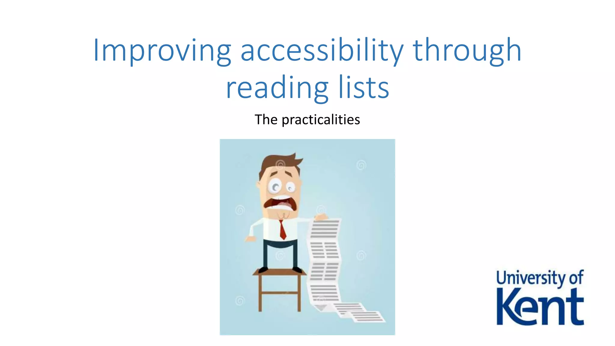 The document discusses the University of Kent's OPERA Project which aims to improve accessibility through prioritized reading lists. Key points:
