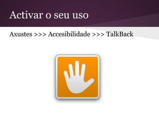 Axustes >>> Accesibilidade >>> TalkBack