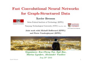 This document discusses convolutional neural networks (CNNs) for graph-structured data. CNNs are traditionally designed for Euclidean data like images but not irregular graph data. The key ideas are: