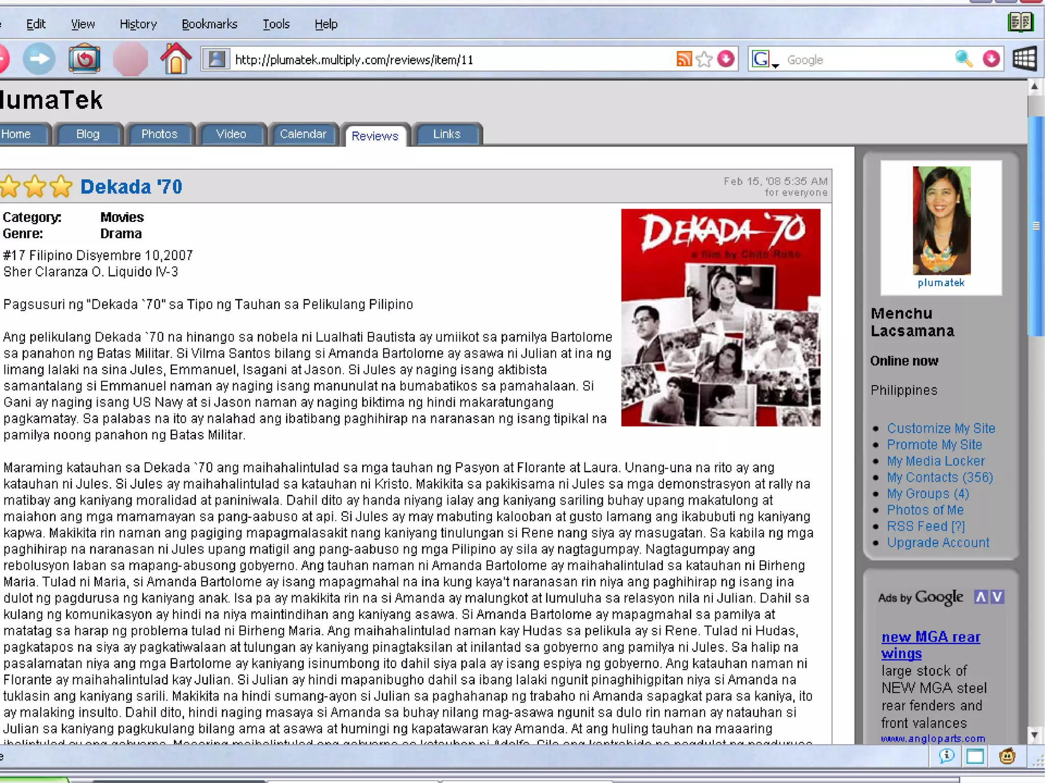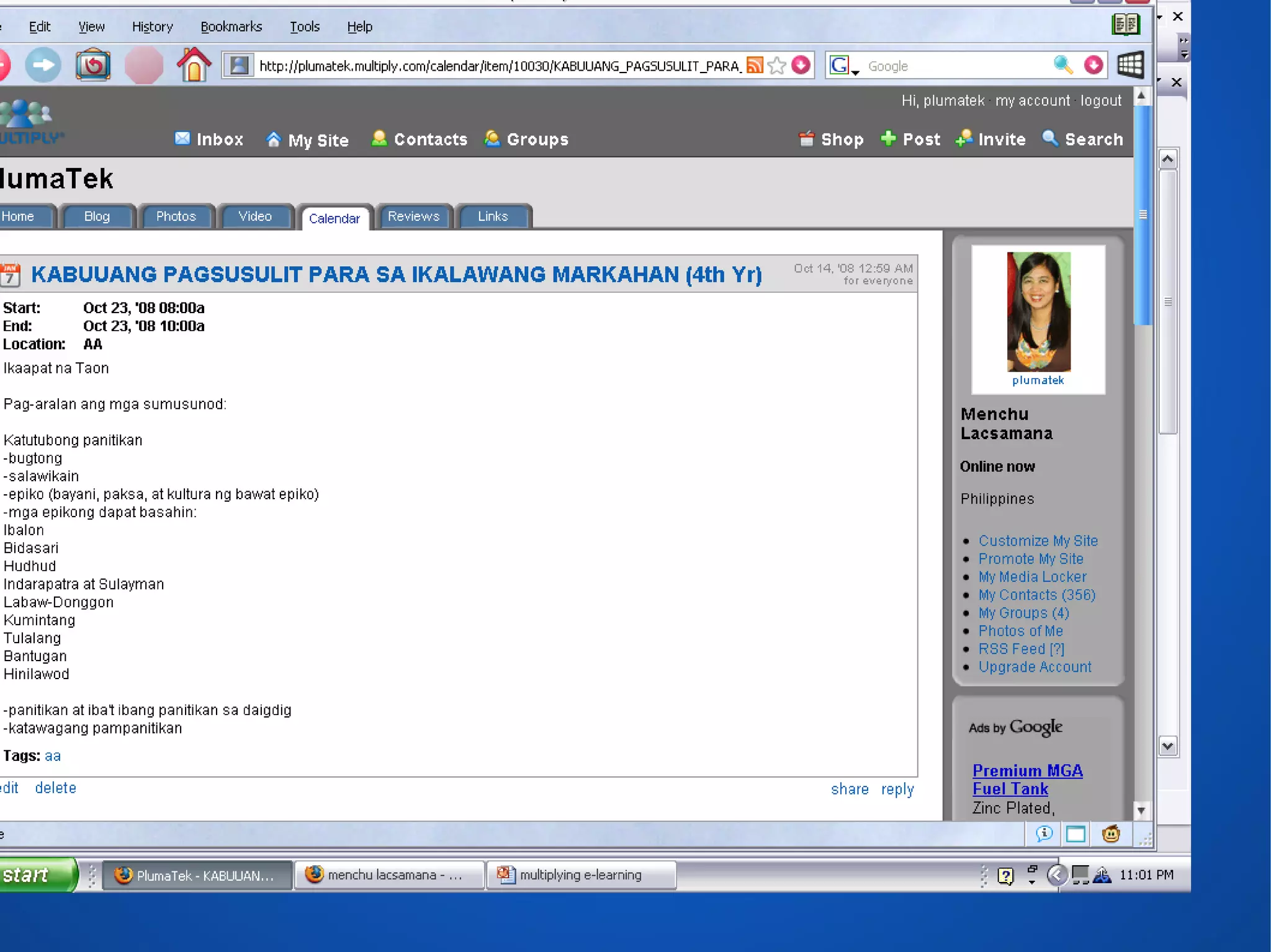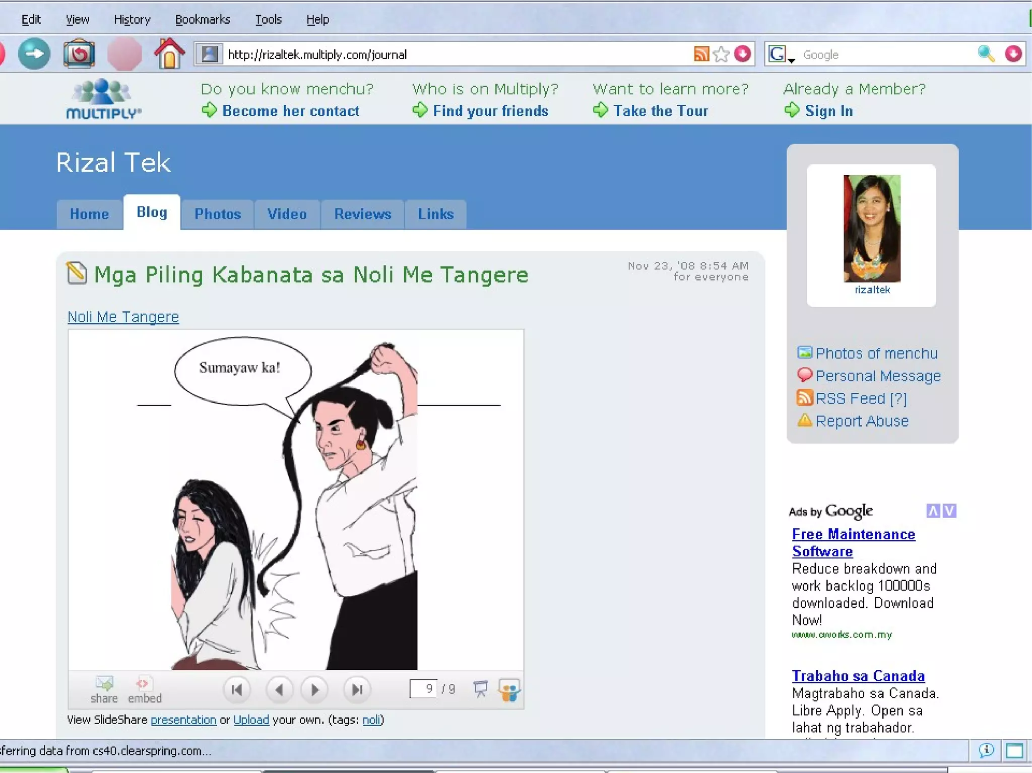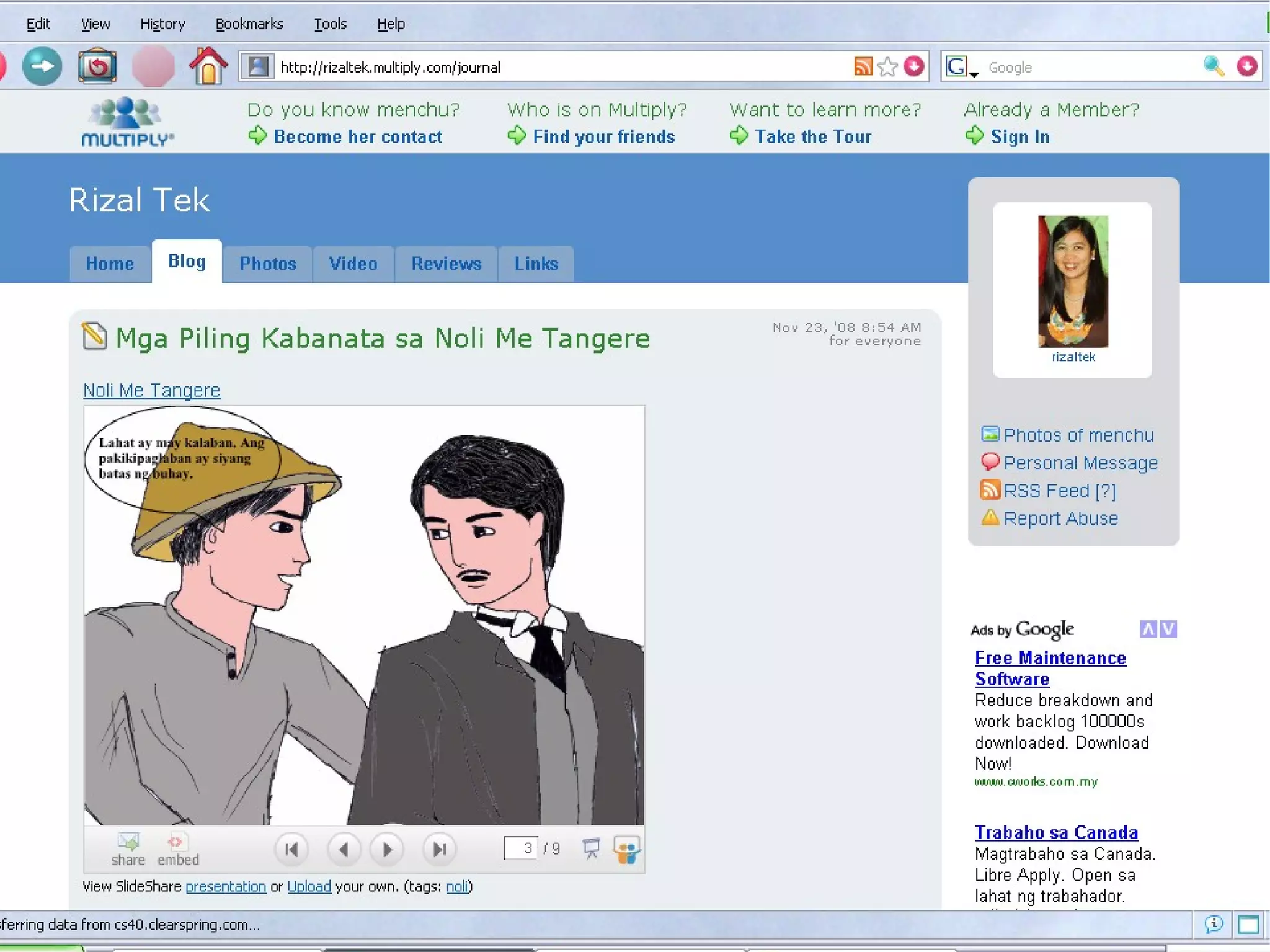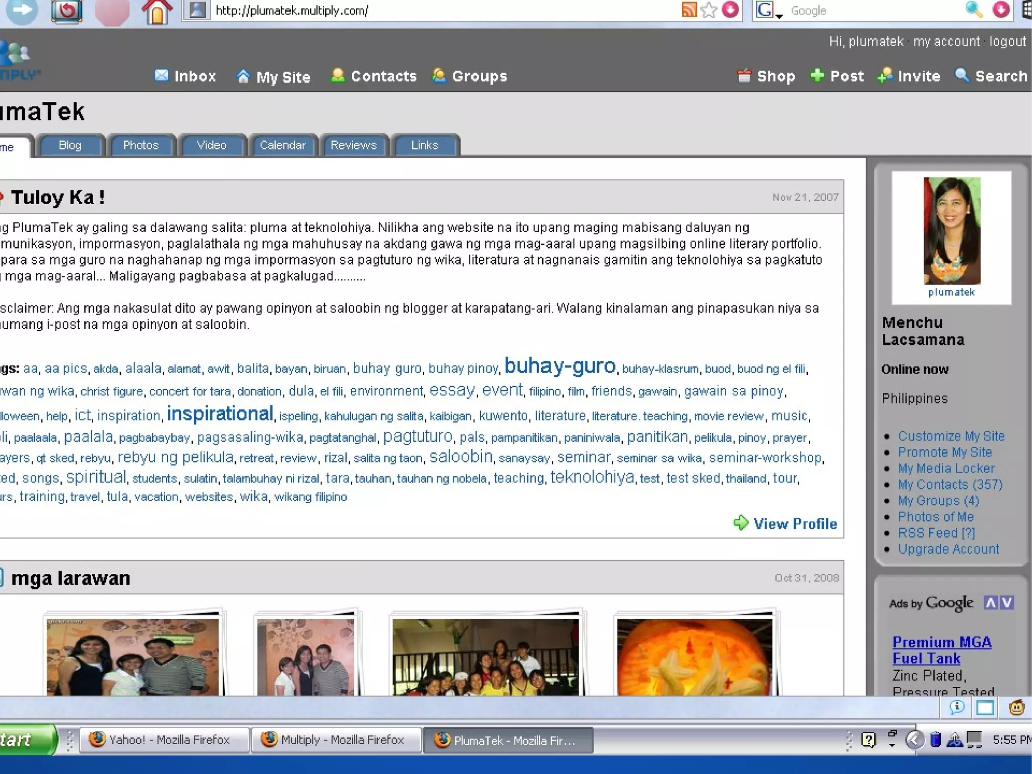 This presentation discusses using the social network Multiply for teaching Filipino literature, highlighting the benefits of increased accessibility, collaboration, and improved writing skills. It includes personal experiences with blogging, setting up a blog, and emphasizes the importance of technology in education. The conclusion stresses active engagement, creativity, and professional networking as essential components of teaching and learning.